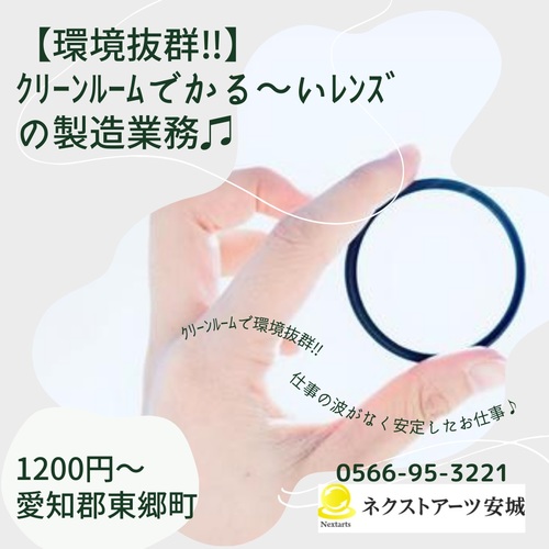 【環境抜群】クリーンルームでかる~いレンズの製造のお仕事!!