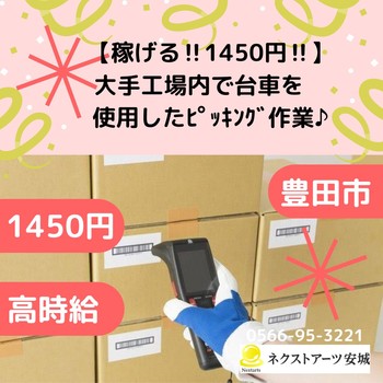 【稼げる!1450円!】大手工場内で台車を使ったピッキング作業♪