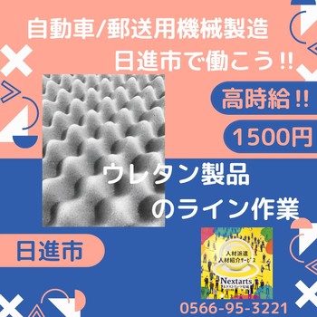 【自動車/輸送用機械製造】 日進市で働こう!! 時給1500円のウレタン製品のライン作業!!