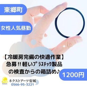 【冷暖房完備の快適作業】☆急募☆ 軽いプラスチック製品の検査からの箱詰め♪