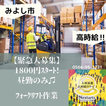 【駅チカ(徒歩2分)で昼勤のみ!】 綺麗な倉庫で1500円のオシゴト♪