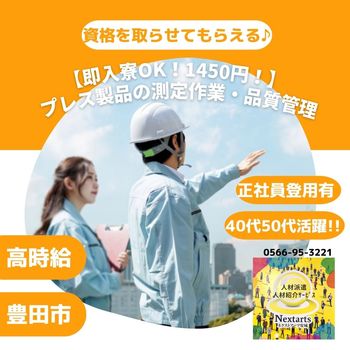 【即入寮OK!1450円!】プレス製品の測定作業・品質管理